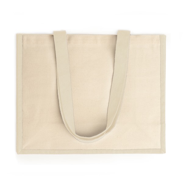 Mochila de algodão 120g/m2 com banda de serapilheira numa das faces. Alça de cordão.